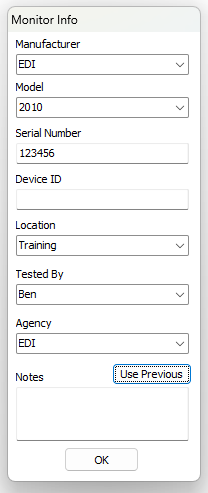 - Enter Reno 2018 Monitor data into Monitor Info (serial number, etc.)
